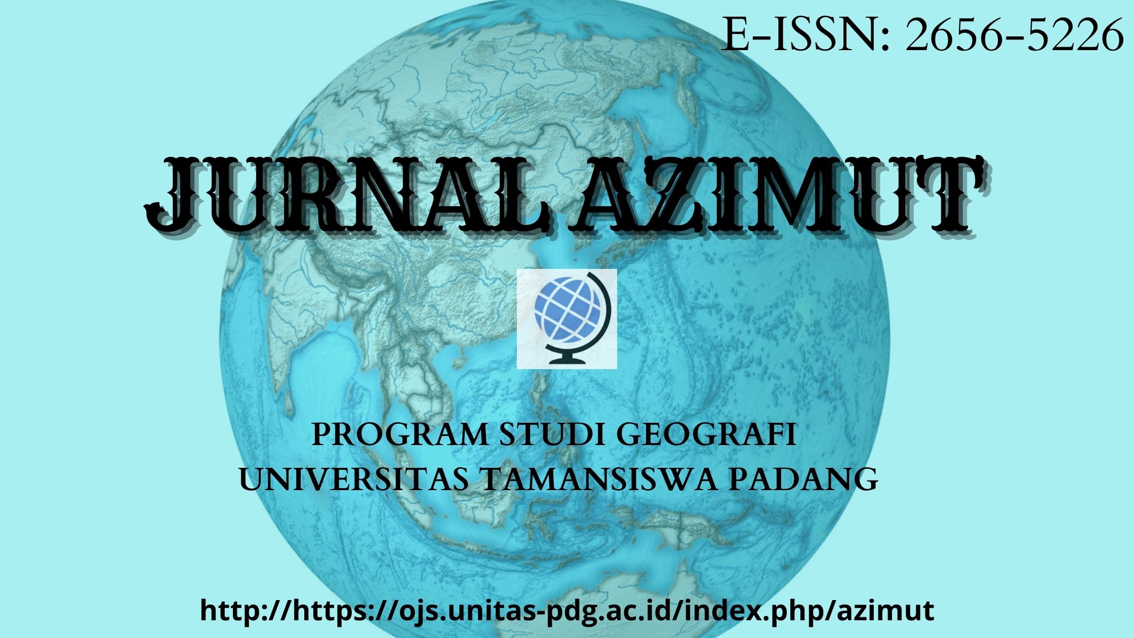 The Journal Azimut is a geography scientific journal with E-ISSN 2656-5226 published by the Geography Study Program at Universitas Tamansiswa Padang. The Journal Azimut focuses on the interdisciplinary field of geography including Geographic Information Systems (GIS), remote sensing (PJ), social geography, disaster, environment, weather and climate, coasts and watersheds, as well as regional planning and development.